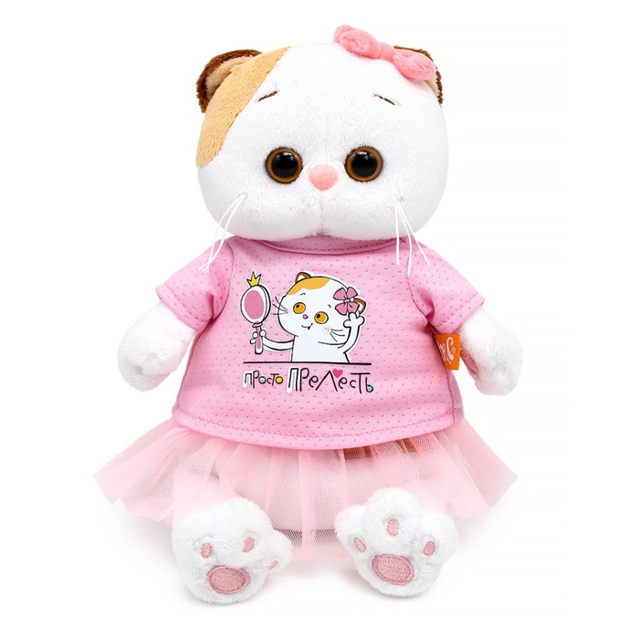 Мягкая кошечка Ли-Ли в футболке с принтом — это очаровательный персонаж, который станет идеальным другом для вашей девочки. Её стильный образ и компактный размер делают её универсальным выбором для игр, украшения комнаты или как подарка на любой праздник.
