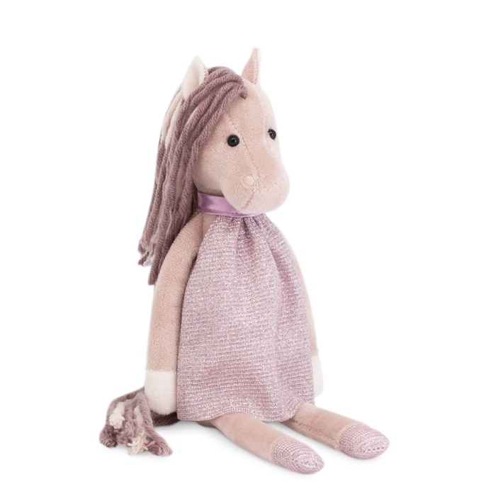 Мягкая лошадка «Искорка» в блестящем платье — это очаровательный персонаж, который станет любимым другом для вашей дочери или стильным аксессуаром в интерьере. Её нежный бежевый мех и изящный наряд создают атмосферу волшебства, а компактный размер делает её идеальным спутником для игр дома, в детском саду или даже в путешествии.