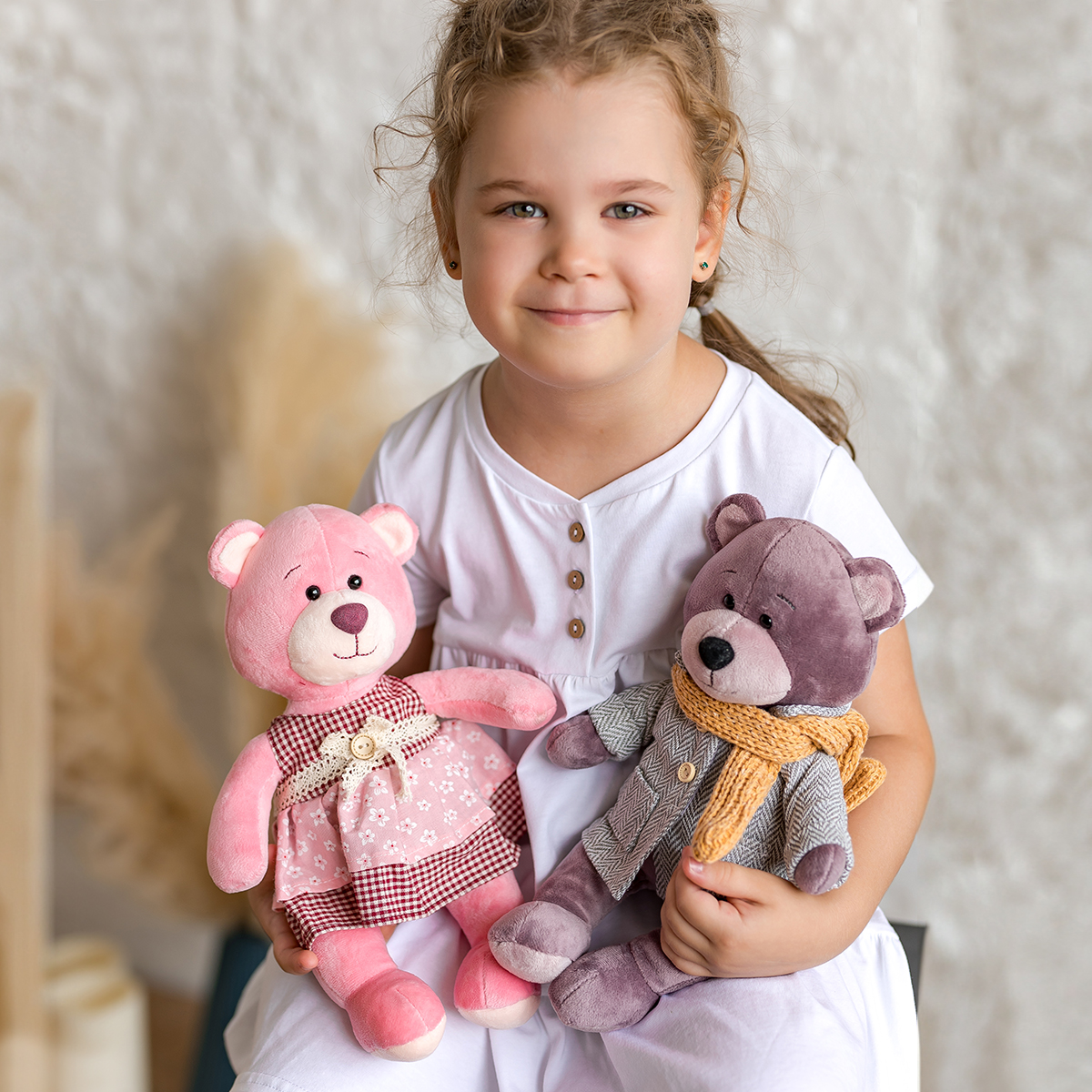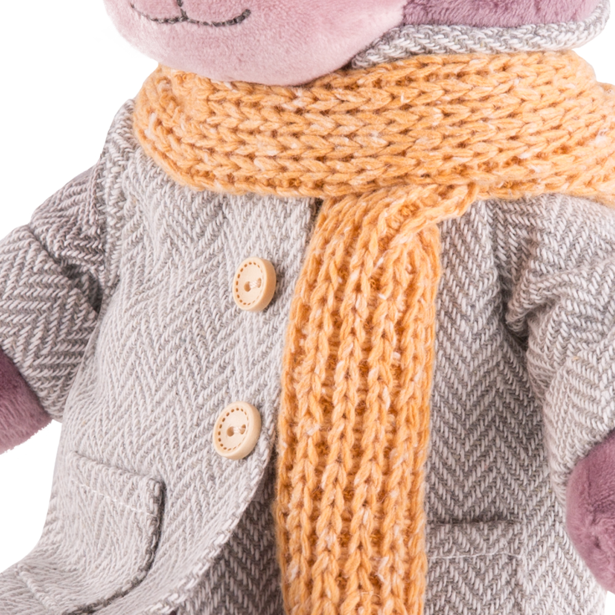 Мишка Ронни облачился в строгое серое пальто и немного разбавил гамму ярким шарфом. Ронни нравится ходить по разным местам, он – душа компании и не даёт друзьям заскучать. Мишка всегда готов придумать новую интересную тему для обсуждения! А так как Ронни очень предусмотрительный, он тепло оделся, чтобы быть готовым отправиться в путешествие по первому зову, куда Вам угодно!