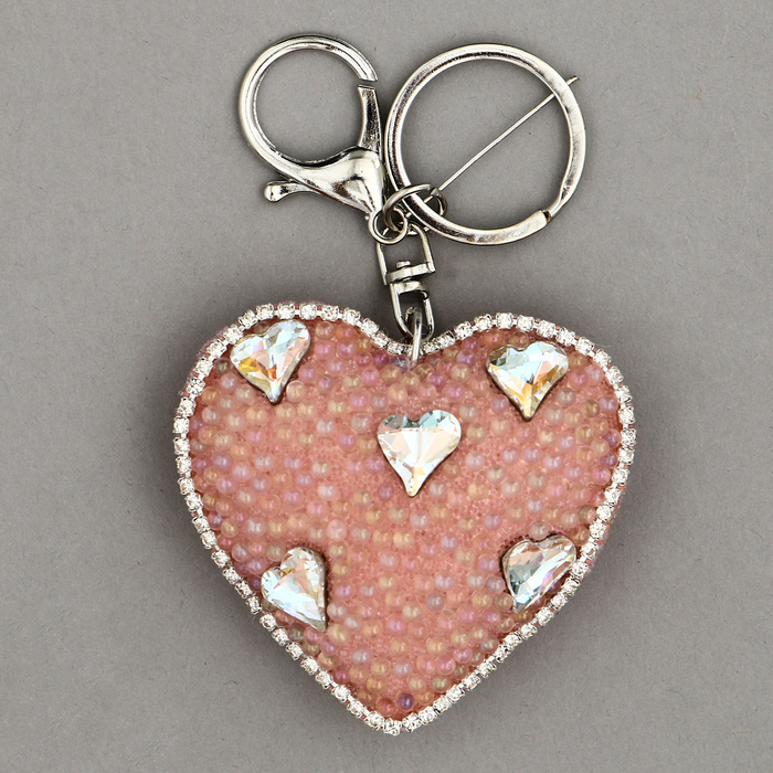 Мягкая игрушка "Объемное сердце" со стразами, на брелоке, 7 см, цвет розовый