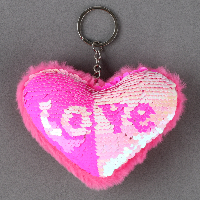 Мягкая игрушка "Сердечко" с пайетками, на брелоке, 10 см, цвет фуксия