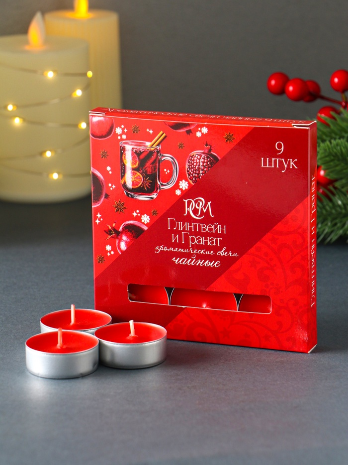 Набор из девяти ароматических свечей создаёт праздничную атмосферу с первого зажжения. Тёплый и пряный аромат глинтвейна в сочетании со сладкой свежестью граната наполняет дом уютом зимнего вечера.