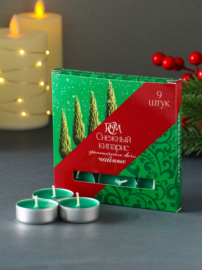 Набор из девяти зелёных свечей с снежного кипариса создаёт в доме атмосферу уединённого зимнего леса. Горит ровно и долго, наполняя пространство тёплым и прозрачным древесно-хвойным шлейфом.