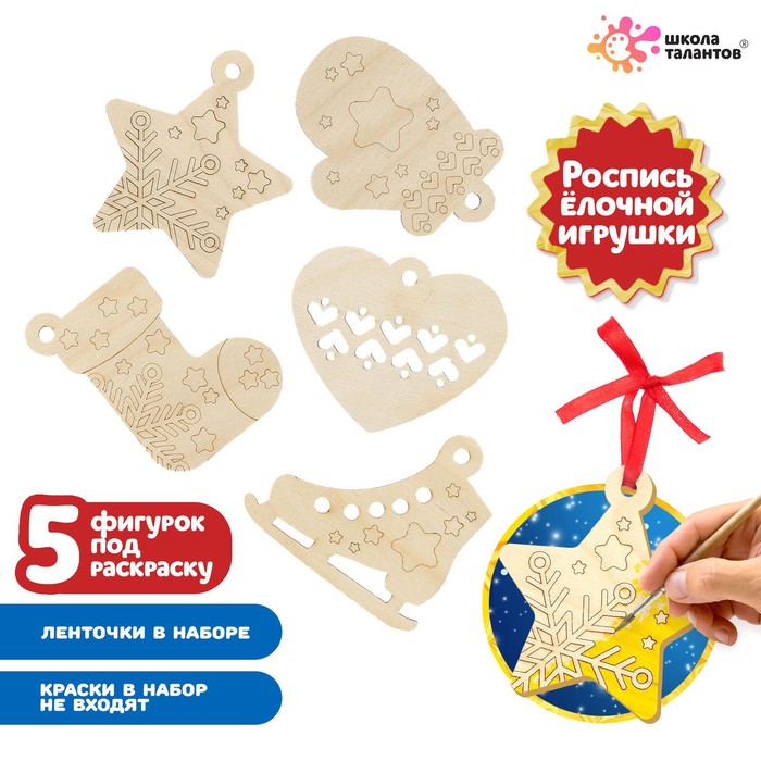 С набором для росписи по дереву у вас получится смастерить 5 новогодних подвесок и украсить ими праздничную ёлочку или интерьер.