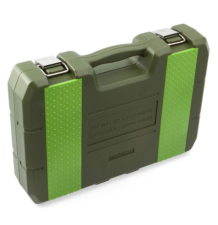 Обновлённая раскладка и дизайн одного из самых популярных наборов Дело Техники 620782, объединившего в себе два типоразмера торцевых головок под 1/4" и 1/2", разнообразные насадки и вставки, а также комплект комбинированных ключей.