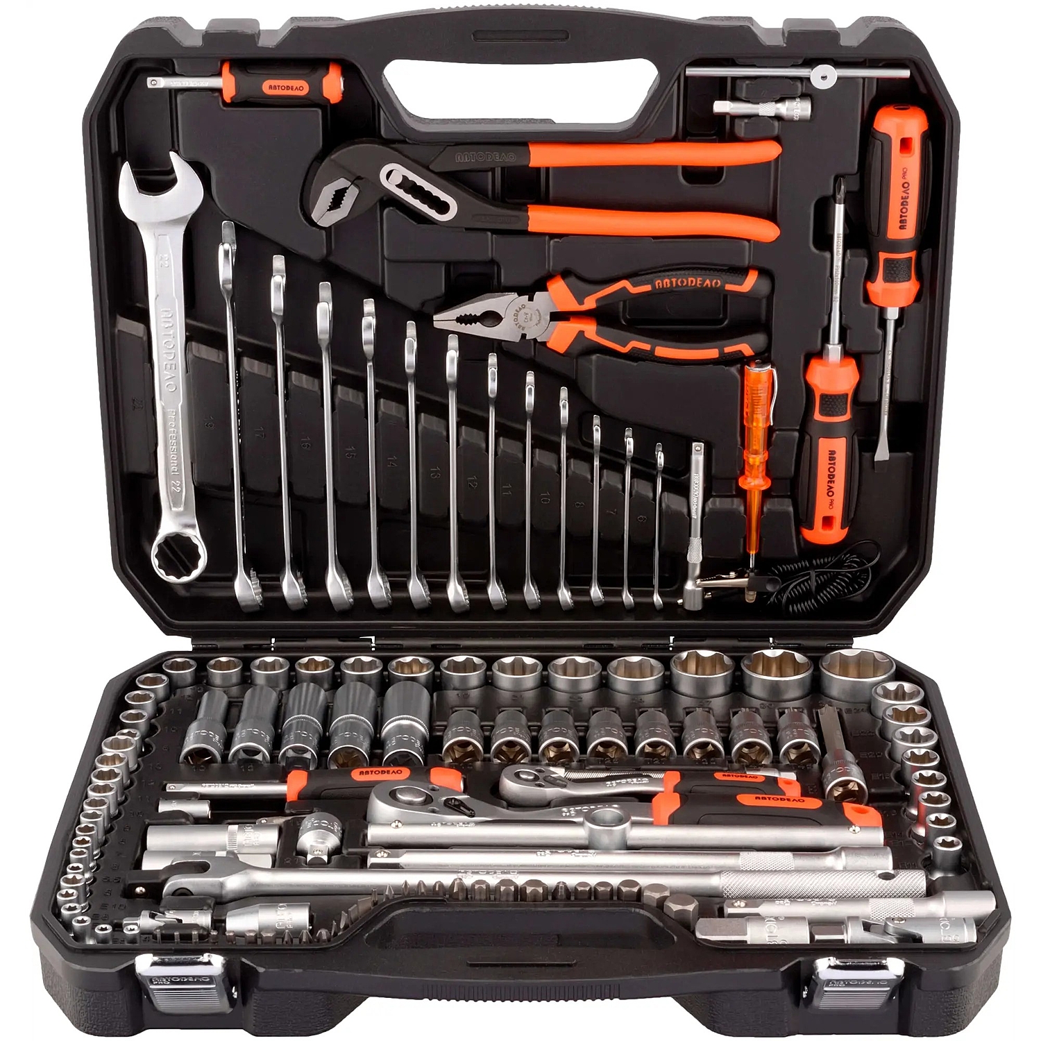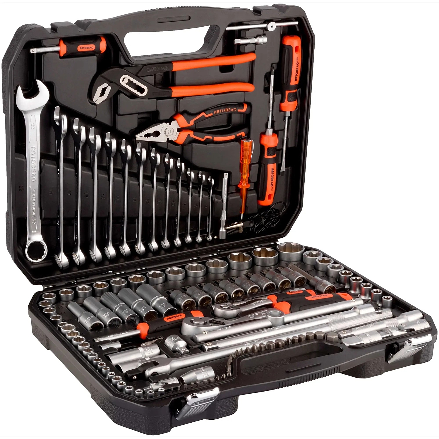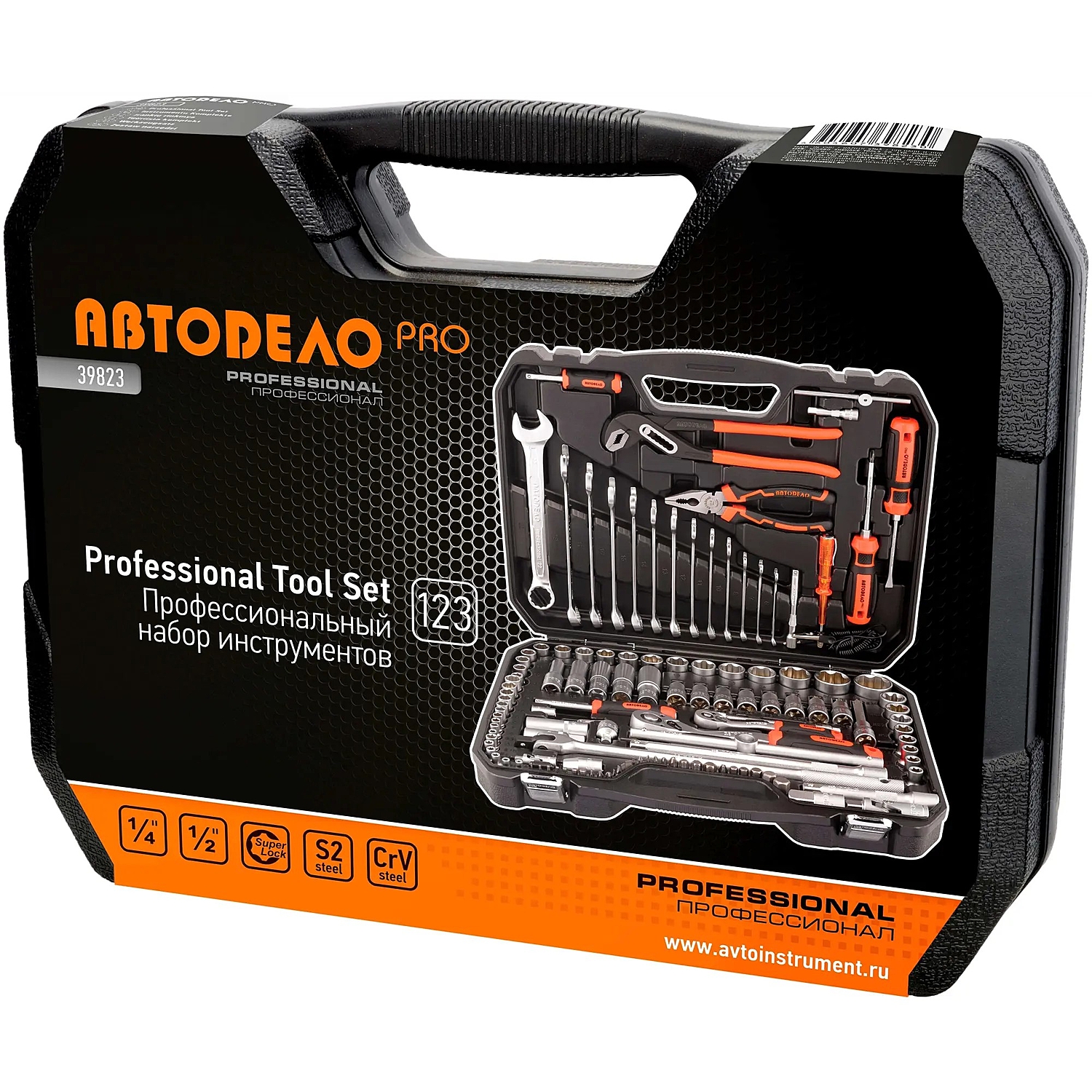 Комплектация набора АвтоDело Pro 39823 оптимизирована для применения как на станциях технического обслуживания, так и в гараже. Набор укомплектован головками торцевыми и ключами с присоединительным квадратом 1/4" и 1/2".
