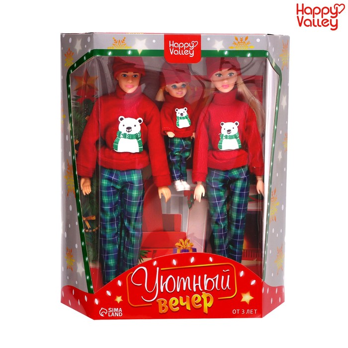 Семья кукол проводит уютный вечер вместе! Малышка сможет поиграть в новогодний праздник или придумать другие сюжеты с куклами.
