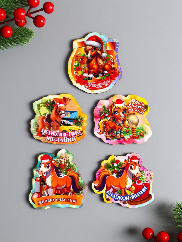 Создайте в своем доме по-настоящему тёплую и душевную атмосферу в преддверии волшебного праздника. Этот набор из пяти магнитов, выполненных с изображением очаровательных лошадок, станет тем самым акцентом, который наполнит кухню ожиданием новогоднего чуда.
