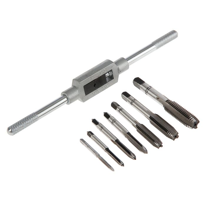 Метчики из набора TUNDRA Basic используются для нарезания внутренней резьбы М3-М12. Они имеют наиболее востребованный шаг и используются с метчикодержателем, который также входит в комплект.
