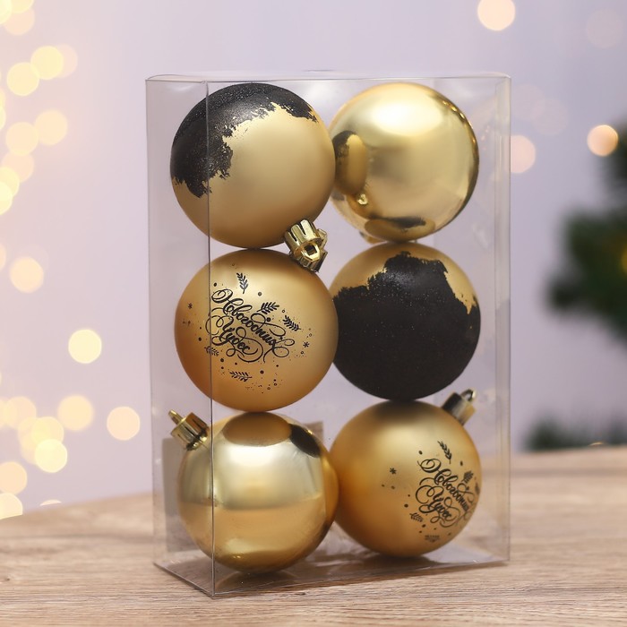 Набор шаров "Новогодних чудес!", золотые, 6 штук, d-6, пластик