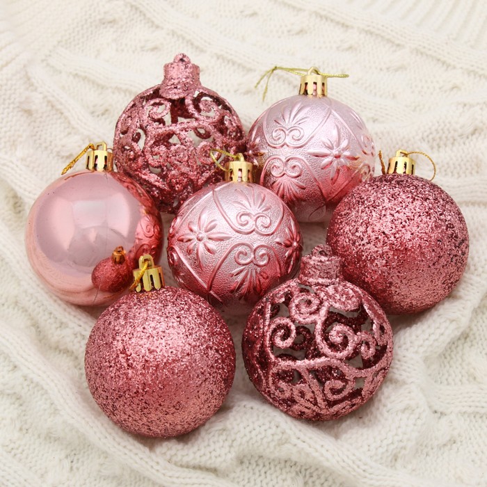 Эти однотонные розовые шары добавляют в оформление мягкие цветовые акценты и визуальную лёгкость. Такой набор помогает сделать ёлку изящной и запоминающейся, поддерживая атмосферу тепла и уюта в новогодние дни.