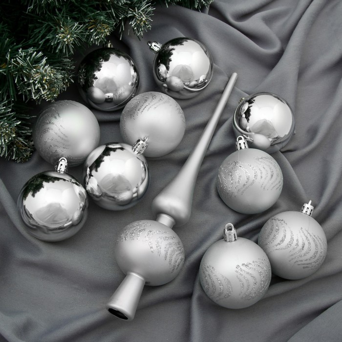 Серебристые шары отражают свет новогодних гирлянд, наполняя пространство мягким сиянием. Их сдержанный дизайн помогает подчеркнуть красоту ёлки и создать уютную праздничную обстановку.