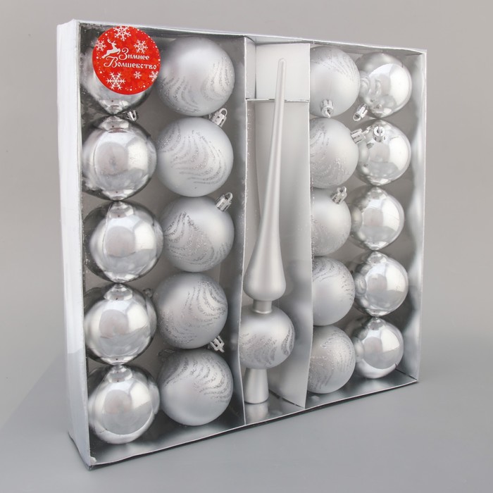 Набор из 21 серебристого шара с верхушкой диаметром 6 см станет гармоничным дополнением к новогоднему оформлению. Пластиковые украшения однотонного цвета сочетаются с интерьерами, выдержанными в датском, скандинавском и ар-деко стилях, создавая лаконичную и стильную праздничную атмосферу.