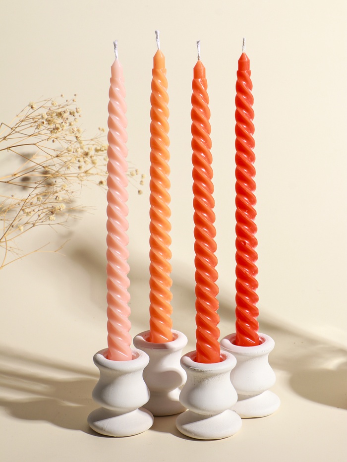 Набор высоких витых свечей создаёт тёплую и уютную атмосферу в интерьере. Эти стройные свечи с выразительным рельефом станут изящным акцентом для романтического ужина, медитации или спокойного вечера с книгой. Их живое пламя привносит в пространство динамику и мягкое свечение, помогая расслабиться после напряжённого дня.