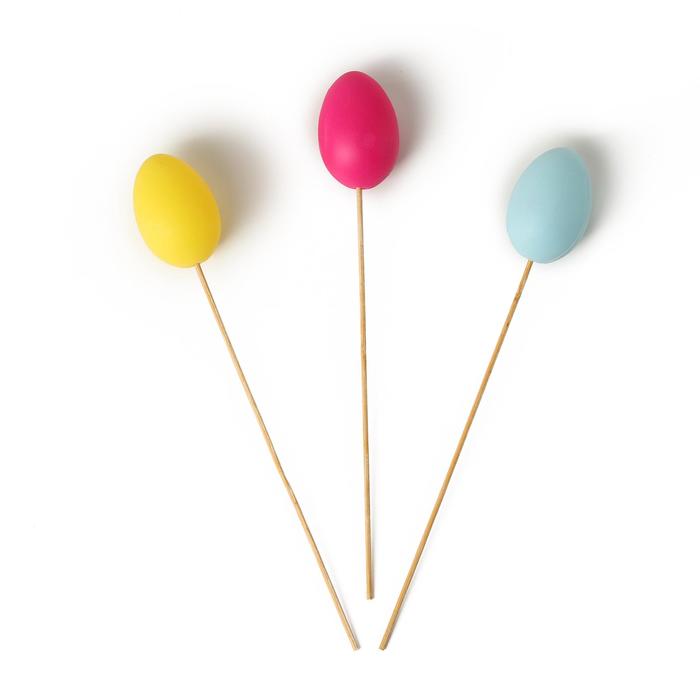 Пластиковое яйцо на палочке может стать пасхальным декором для праздничного стола.