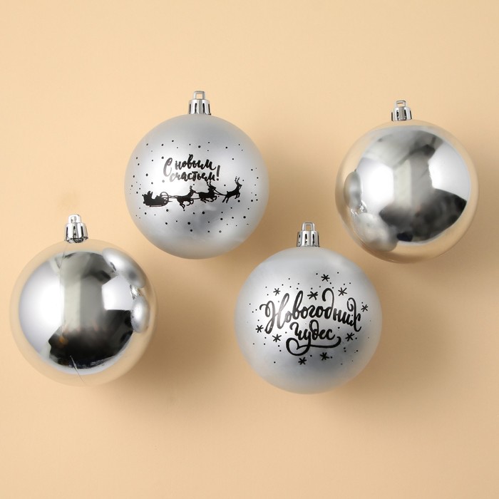 Набор ёлочных шаров "Новогодних чудес!", пластик, d-8, 4 шт, серебро