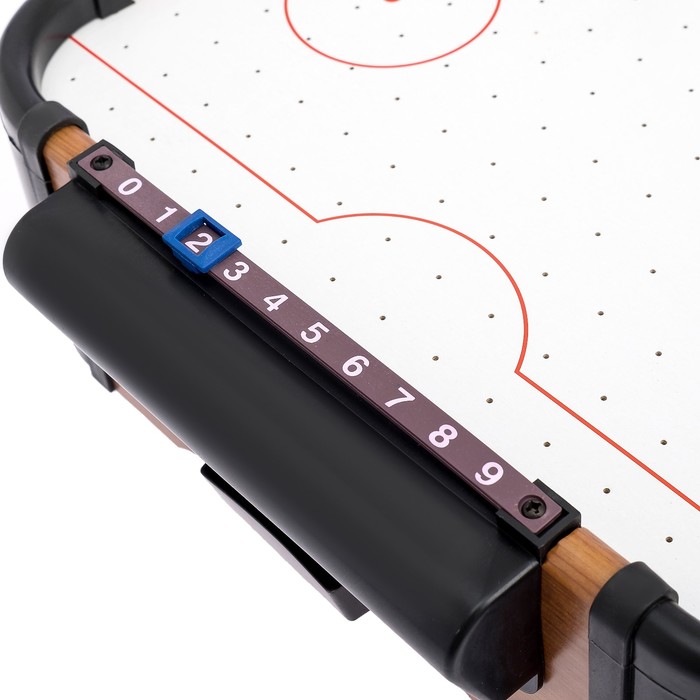 Устройте захватывающее соревнование с настоящим аэрохоккеем в мини-формате и забейте как можно больше голов!