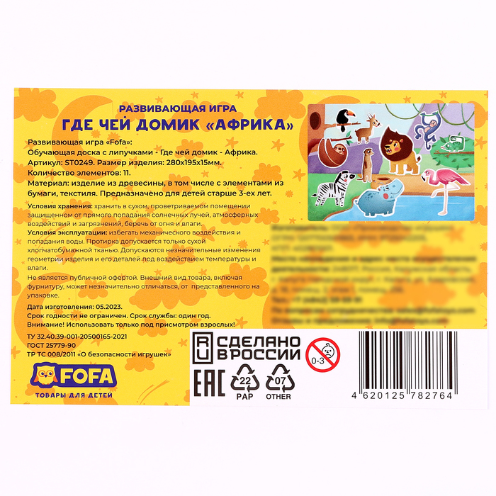 Обучающая доска с липучками «Где чей домик. Африка»