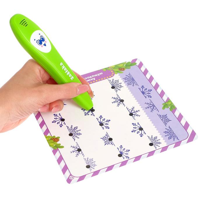 Эта умная ручка станет настоящим помощником малышу в решении новогодних задачек! Благодаря встроенному сенсору и работе батареек она никогда не устанет вам помогать. Ручка мигает сказочным огоньком и привлекает внимание малыша.