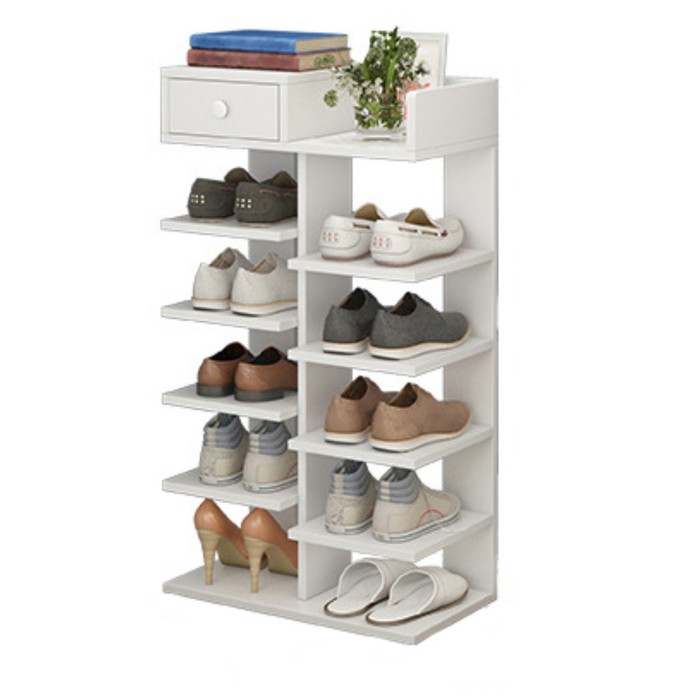 Этажерка для обуви – это практичное и стильное решение для организации пространства в прихожей или гардеробной. Она оснащена семью вместительными полками, которые позволяют разместить до 12 пар обуви, включая высокие сапоги, туфли или кроссовки. Верхняя часть дополнена ящиком с дверцей, где можно хранить ключи, щетки для обуви или другие полезные мелочи.