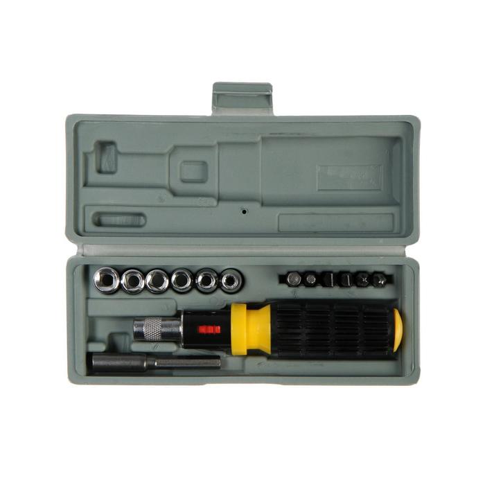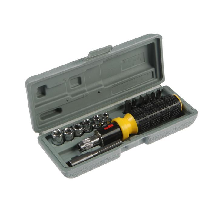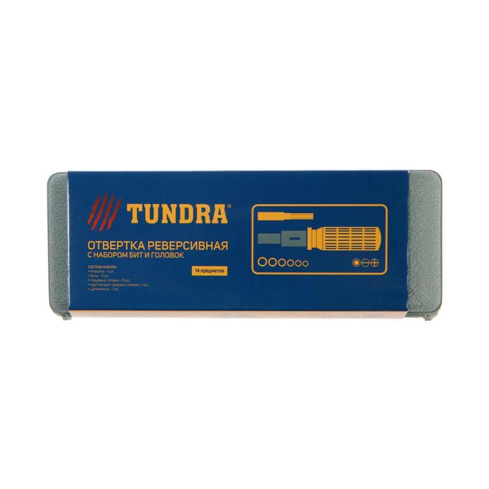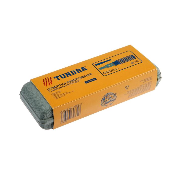 Отвертка реверсивная TUNDRA, с набором бит и головок, в кейсе, 15 предметов