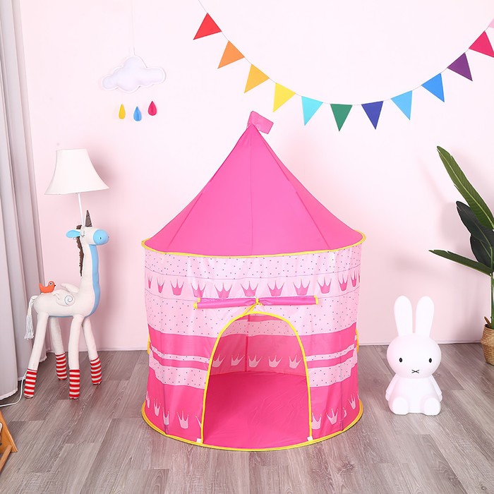 Детская игровая палатка станет незаменимым помощником и другом ребенка дома. Для малыша - это такое место, где он может уединиться со своими игрушками и обустроить всё так, как ему хочется. Палатку можно брать с собой на отдых, ведь она компактно складывается и убирается в удобную сумку. Играя в ней, малыш точно не заскучает! Палатка детская игровая «Шатёр», розового цвета – это отличный подарок, как для мальчика, так и для девочки.