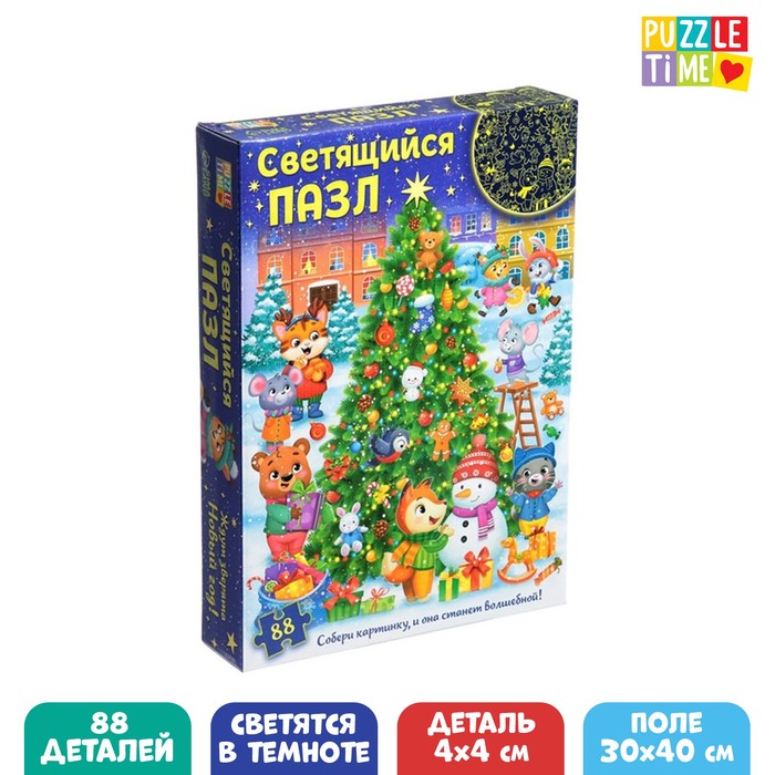 Это не просто пазл, а волшебная игра-головоломка! Достаточно выключить свет в комнате, и вы увидите, как собранная картинка благодаря особой краске начнёт светиться в темноте.