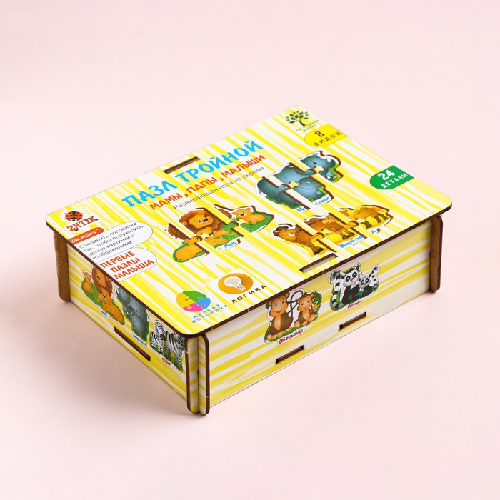 Пазл тройной Мамы, папы, малыши деревянный 24 детали