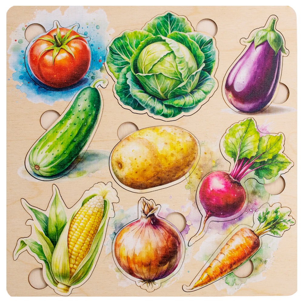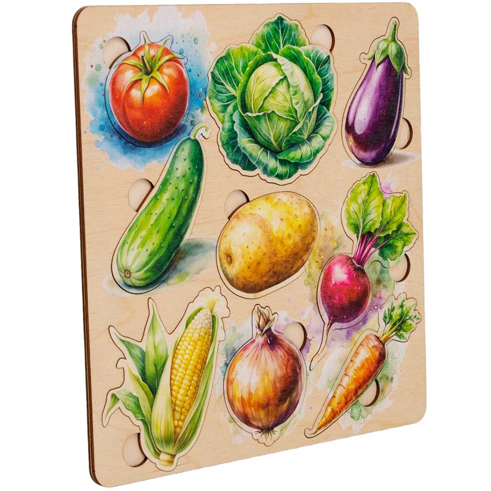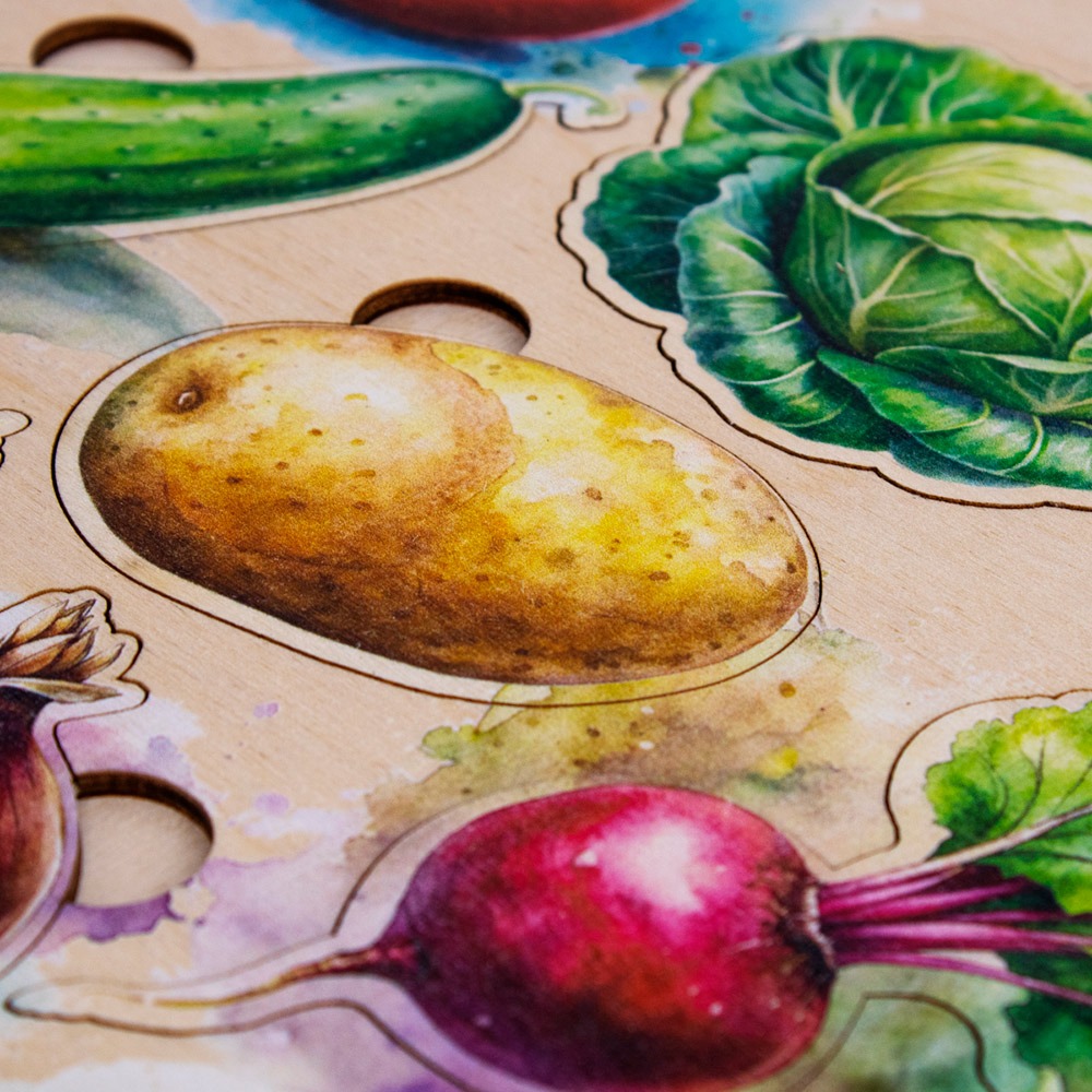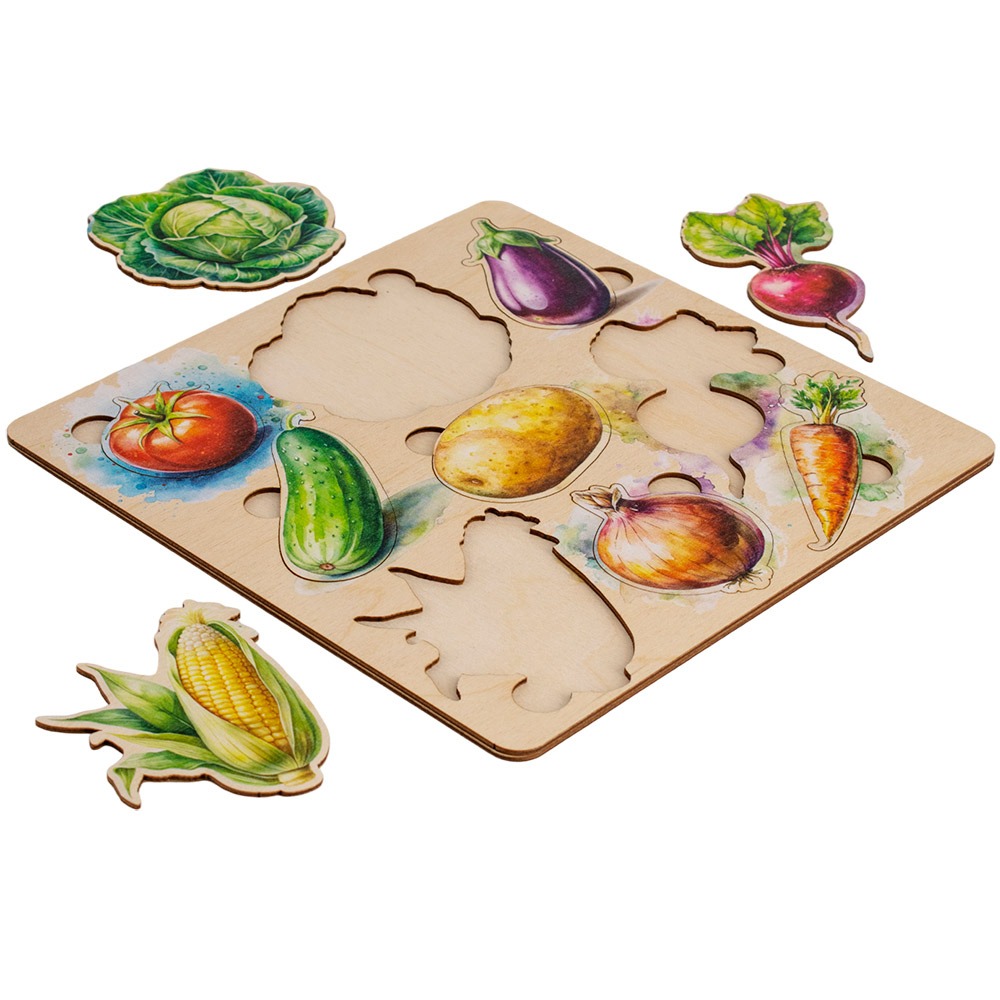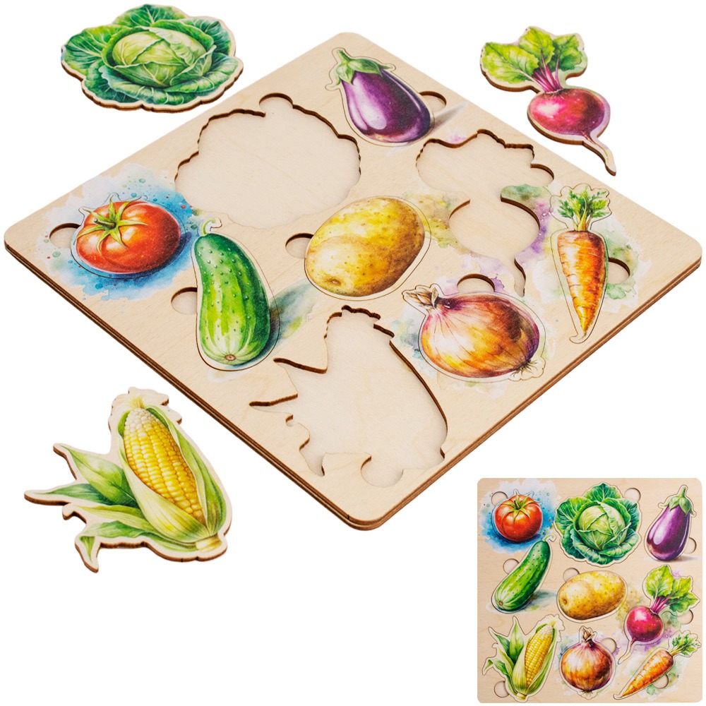 Деревянная игра состоит из основы и различных фигурных элементов, которые нужно располагать по принципу рамок и вкладышей.