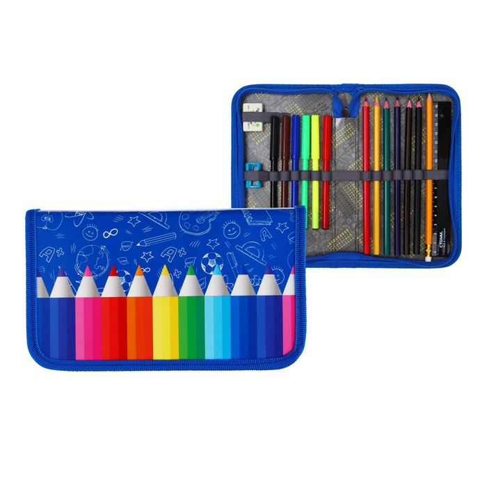 Пенал 1 секция 115*205 наполн. лам.карт 30П26/set Calligrata 16предм "Карандаши" голубой