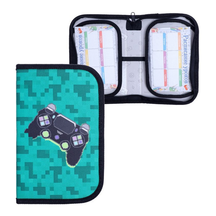 Пенал 1 секция, 130 х 210 х 40 мм, 2 откидные планки, тканевый, Calligrata, Content "Cкейт"