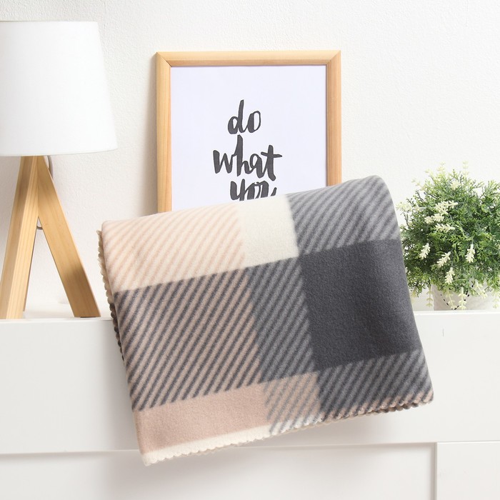 Плед Экономь и Я "Клетка" цв.бежевый, 150*200 см, пл.160 г/м2, 100% п/э