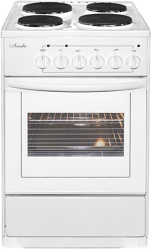 Эта модель оснащена четырьмя чугунными конфорками: по паре диаметром 14,5 и 18 см. Они оптимально подойдут для посуды среднего размера, которая чаще всего и используется при готовке. За управление отвечают удобные и надежные поворотные регуляторы.