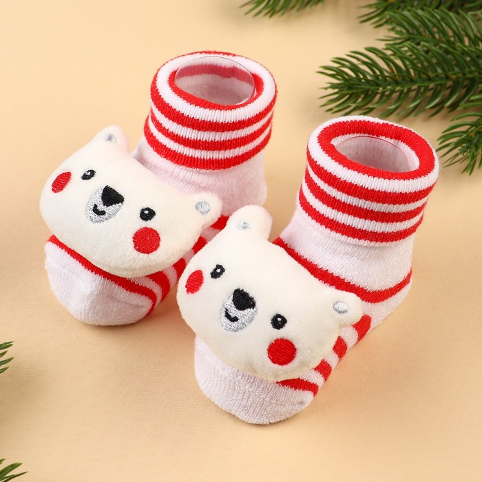 Подарочный набор новогодний: носочки - погремушки на ножки «Мишка», 2 шт.
