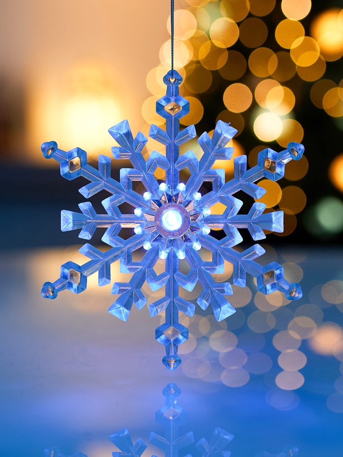 Автономное питание от трёх батареек LR41 позволяет разместить снежинку на ёлке, подоконнике, полке или в составе декоративной композиции без проводов и ограничений по месту. Лёгкий пластиковый корпус обеспечивает прочность и удобство использования.