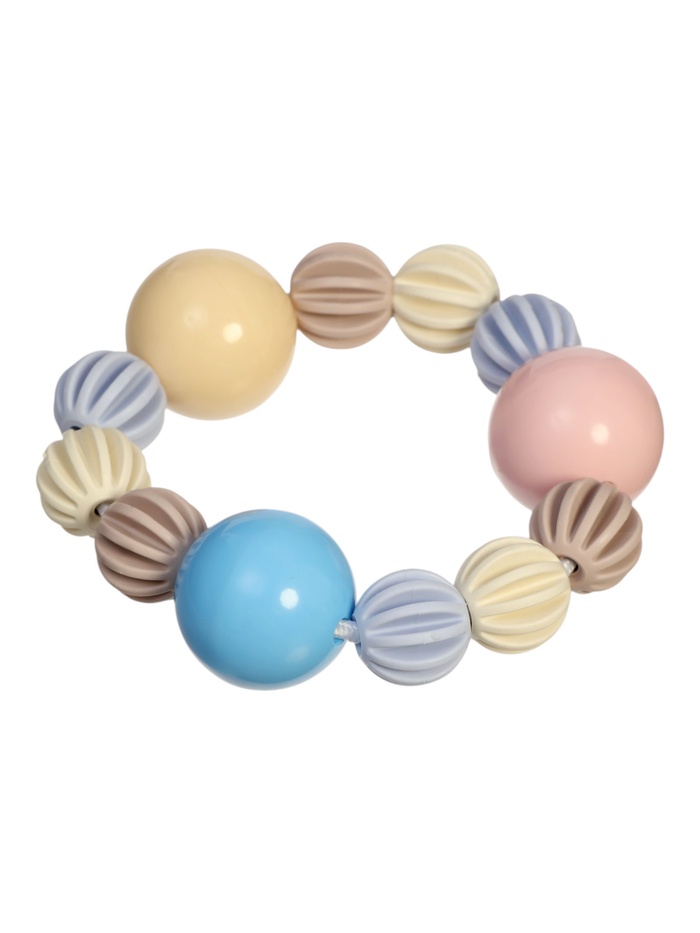 Нежные пастельные цвета и гладкая поверхность делают игрушку не только функциональной, но и эстетичной. Браслетик удобно брать с собой на прогулку или в поездку.