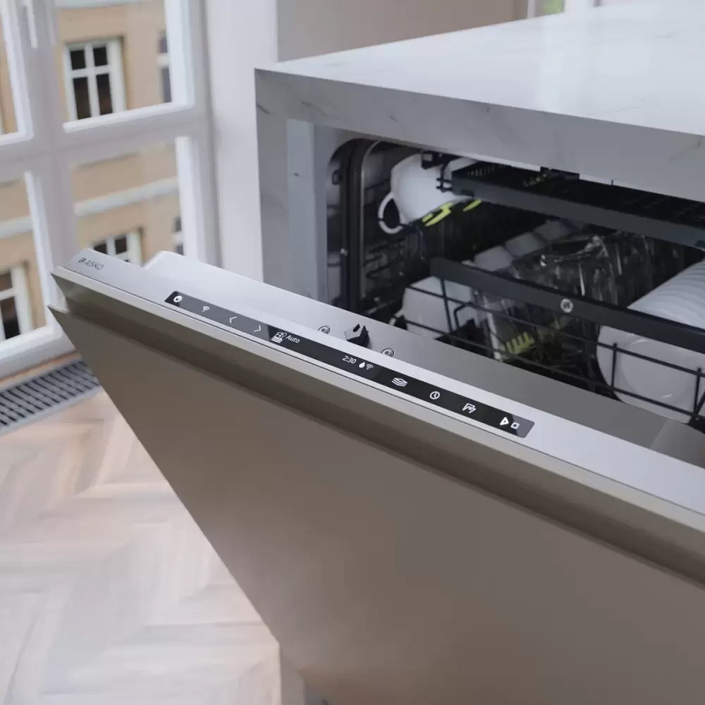 Встраиваемая модель Аско отлично впишется в любой интерьер, главное — правильно выбрать место, чтобы подвести коммуникации. Устанавливается в нишу целиком, полностью закрывается декоративной панелью. Обратите внимание: в комплекте не идет фасад, его необходимо установить самостоятельно. Имеет стандартные размеры, поэтому может не поместиться на очень маленькой кухне. В камеру можно загрузить ограниченное число комплектов: 14 шт. Комплектом считается набор посуды на одного человека, который нужен для полноценного приема пищи: глубокая и плоская тарелки, тарелка для салата, блюдце под чашку, сама чашка, ложка и вилка.