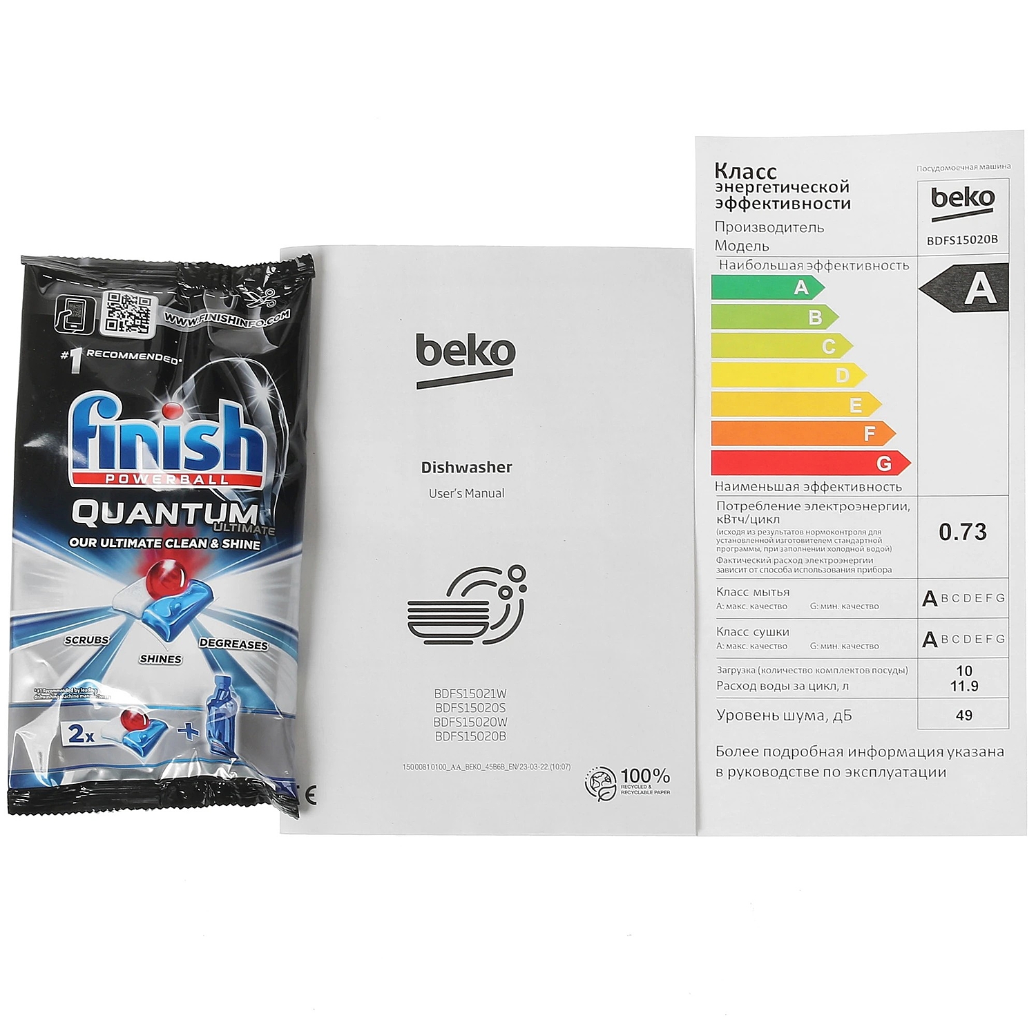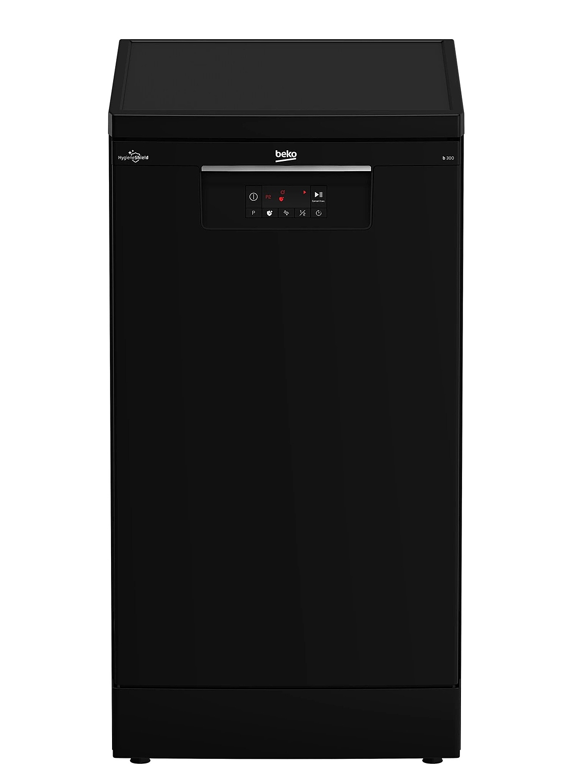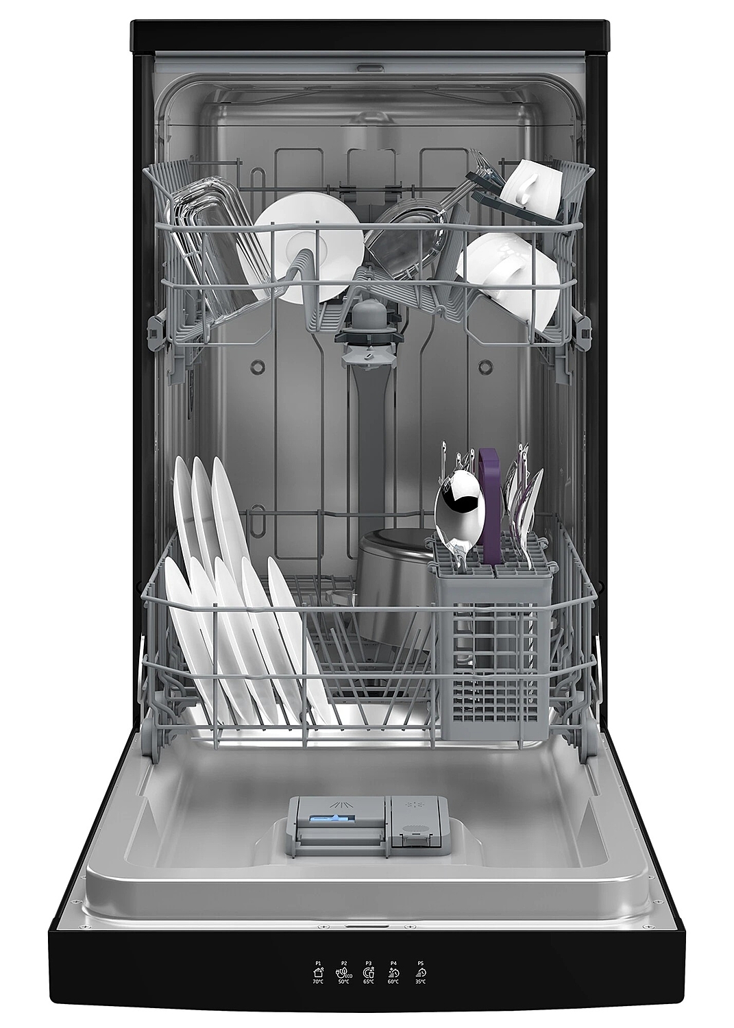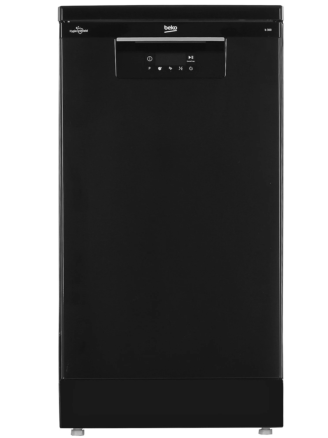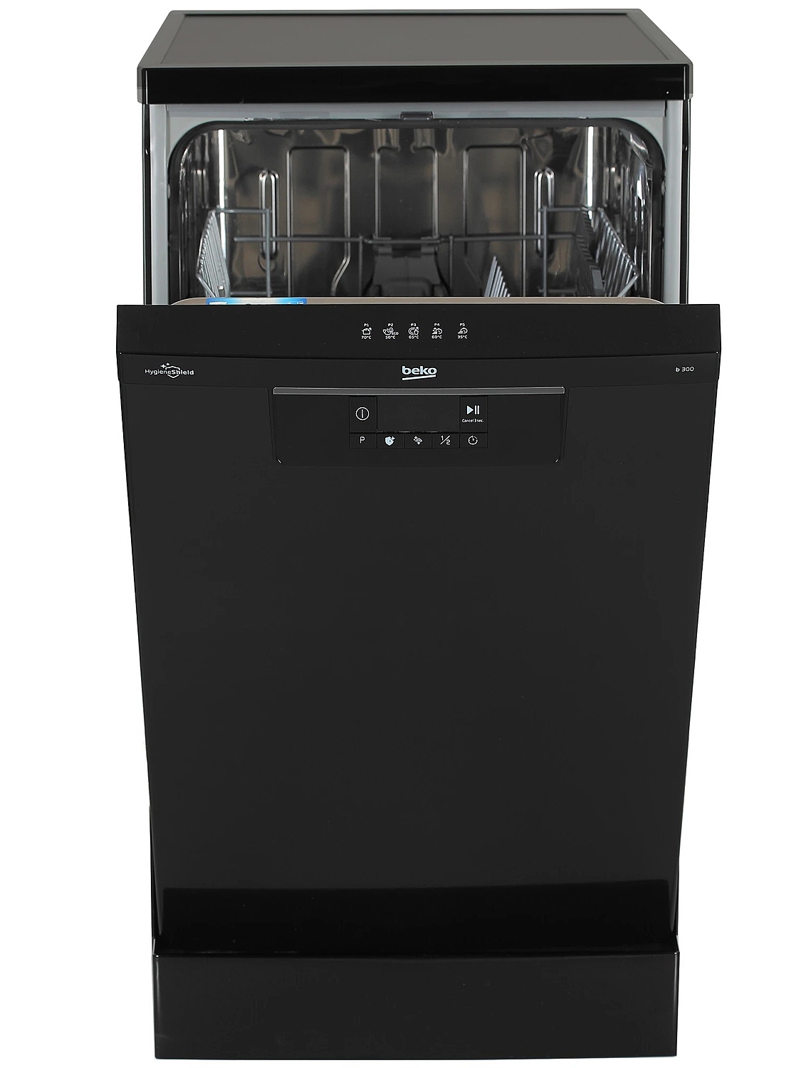 Стильная отдельностоящая посудомоечная машина Beko BDFS15020B шириной 45 см выполнена в черном цвете и оснащена удобным LED-дисплеем. Вмещает до 10 комплектов посуды и имеет 5 режимов работы.