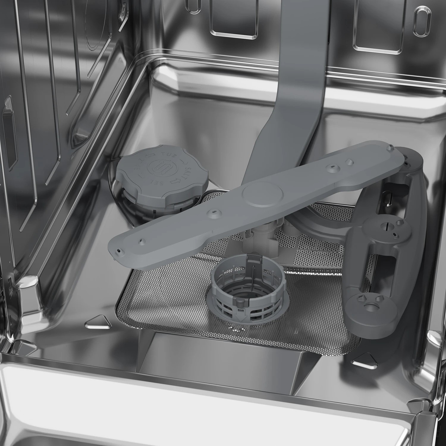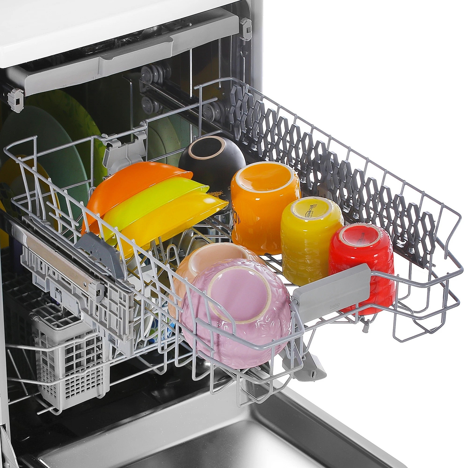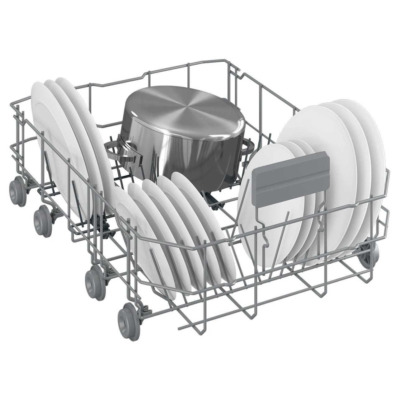 Нижняя корзина машины оснащена дополнительным разбрызгивателем AquaiIntense, позволяющим справляться даже с самыми стойкими загрязнениями. Полки верхней корзины — регулируемые.