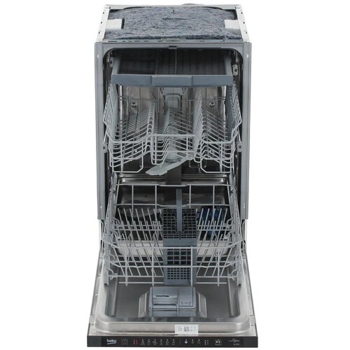Встраиваемая посудомоечная машина Beko BDIS35162Q шириной 45 см вмещает до 11 комплектов посуды. Она оснащена 6 режимами с температурой от 35°С до 70°С. Внутри предусмотрены 3 корзины с дополнительными полками для чашек. Программа выбирается в зависимости от количества посуды и степени загрязнения.
