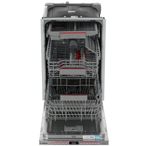 На панели управления из нержавеющей стали расположены электронные кнопки и цифровой дисплей. Функция Home Connect предоставляет возможность удаленной настройки параметров посудомоечной машиной Bosch SPV4HMX65Q через приложение на смартфоне по Wi-Fi. Инверторный двигатель EcoSilence Drive за счет отсутствия щеток обеспечивает тихую работу и экономичное потребление энергии. Система AquaStop перекрывает подачу воды при обнаружении неисправности шланга и протечек в корпусе.