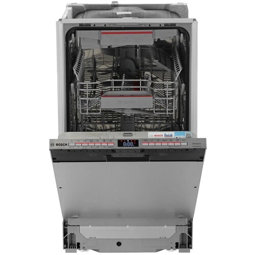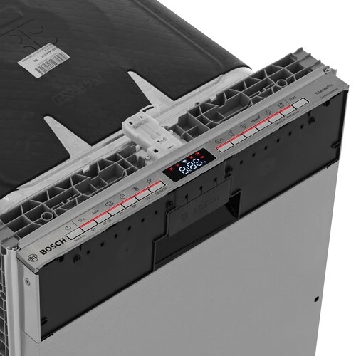 На панели управления из нержавеющей стали расположены электронные кнопки и цифровой дисплей. Функция Home Connect предоставляет возможность удаленной настройки параметров посудомоечной машиной Bosch SPV4HMX65Q через приложение на смартфоне по Wi-Fi. Инверторный двигатель EcoSilence Drive за счет отсутствия щеток обеспечивает тихую работу и экономичное потребление энергии. Система AquaStop перекрывает подачу воды при обнаружении неисправности шланга и протечек в корпусе.