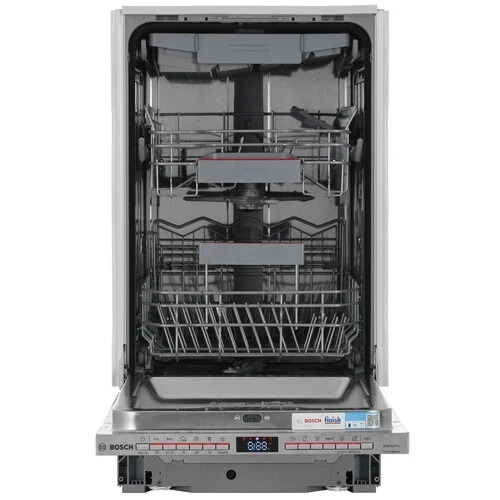Посудомоечная машина Bosch SPV6EMX65Q оснащена панелью с электронными кнопками и дисплеем. Поддерживается удаленное управление через приложение Home Connect на смартфоне. Проецирование светового луча во время работы и по окончанию программы делает комфортным визуальный контроль состояния. Замок ServoSchloss с доводчиком плотно закрывает дверцу после загрузки посуды. Благодаря инверторному двигателю EcoSilence Drive техника работает тихо и экономично расходует электроэнергию.