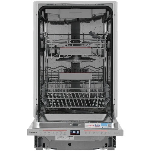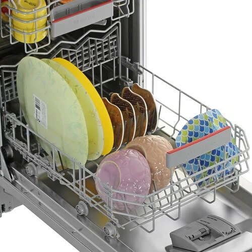 После мытья в посудомоечной машине пластиковая посуда часто остаётся мокрой. Именно для неё в посудомоечных машинах Bosch есть программа ExtraDry. Она повышает температуру последнего полоскания и продлевает время сушки. Таким образом, даже пластиковая посуда, такая как бутылочки для детского питания или посуда для пикника, становится идеально чистой и абсолютно сухой. Вместительный верхний короб можно регулировать по высоте в целом на 5 см между тремя положениями простым движением руки - благодаря системе Rackmatic. Функция TimeLight полностью заменяет скрытый на время работы дисплей прибора, проецируя белым цветом на напольное покрытие: время до окончания программы, текущий этап программы и общую статусную строку. Посудомоечные машины Bosch оснащены системой AquaStop, состоящей из специального шланга двойной защиты, предохранительного клапана и поддона, расположенного в нижней части, с поплавковым выключателем. Вся система обеспечивает надежную защиту от протечек.