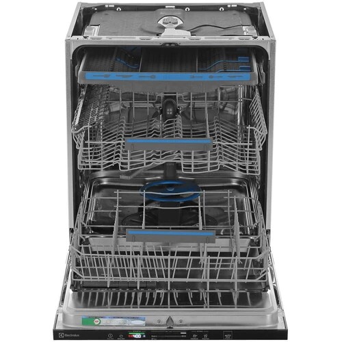Встраиваемая посудомоечная машина Electrolux EES848200L рассчитана на одновременную загрузку 14 комплектов посуды и подойдет для семьи из 3-4 человек. Она экономит воду по сравнению с ручной мойкой посуды. Расход воды составляет 10.5 литров за цикл. Наличие дисплея помогает контролировать процесс мойки, выбирать нужные настройки и получать информацию о состоянии машины. Защита от протечек автоматически блокирует подачу воды и не позволит затопить пол. Electrolux EES848200L использует инверторный мотор, который имеет минимальный уровень шума. Устройство использует конденсационный тип сушки, в котором испарение влаги с поверхности посуды происходит естественным путем. Нагрев воды от 50°C до 70°C позволяет адаптировать программу мойки под различные типы посуды и степени загрязнения.