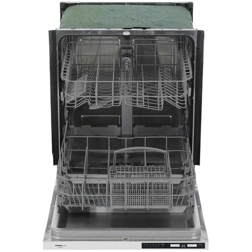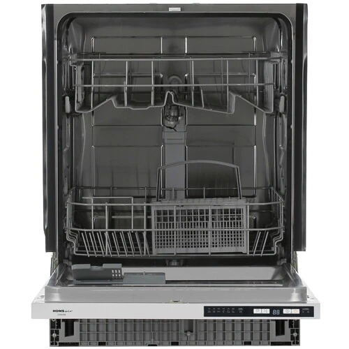 Встраиваемая посудомоечная машина HOMSair DW66M поддерживает загрузку до 12 комплектов посуды. За один цикл расходуется 11 л воды. В модели реализованы 6 автоматических программ в зависимости от вида посуды и степени ее загрязнения. Благодаря функции 3 в 1 компоненты таблетки растворяются постепенно на каждом этапе мытья.