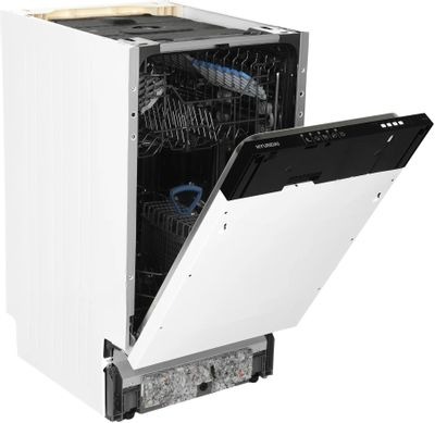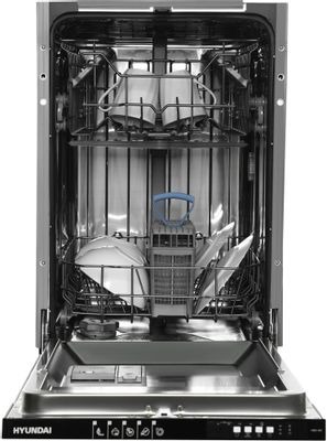 Встраиваемая посудомоечная машина Hyundai HBD 451 – это надежный помощник на кухне, сочетающий компактные размеры и современные технологии. Узкая модель шириной 45 см вмещает до 10 комплектов посуды, что делает её хорошим выбором для небольших семей и ограниченного пространства.