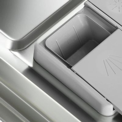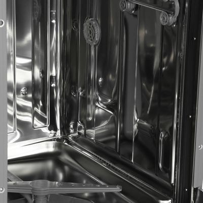 Внутреннее пространство организовано с учетом эргономики: регулируемая по высоте корзина и две удобные секции позволяют эффективно распределять посуду. Минимальный расход воды – 9 литров, а уровень шума не превышает 49 дБ, что делает машину практически бесшумной.