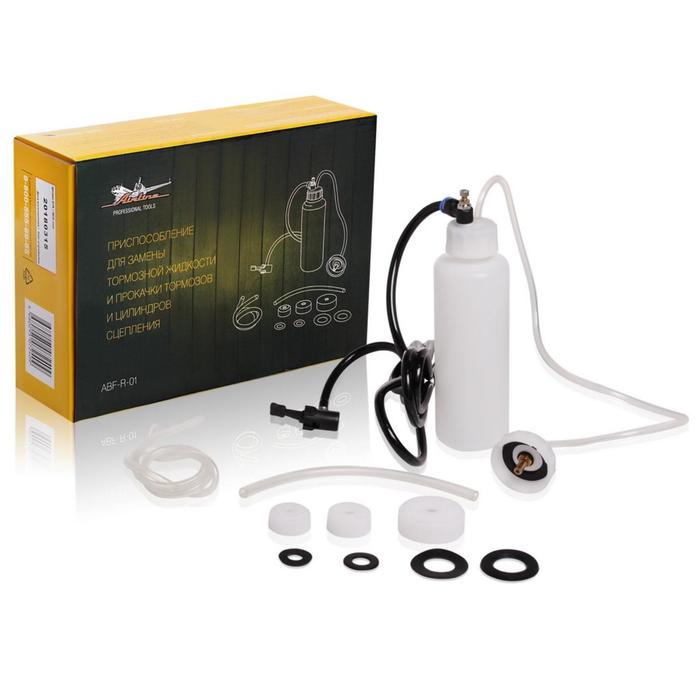 Приспособление для замены тормозной жидкости и прокачки гидравлических приводов тормозных систем и цилиндров сцепления представляет собой устройство, с помощью которого осуществляется производство работ по прокачке гидравлических контуров приводов тормозных механизмов, рабочих цилиндров приводов сцепления и замене рабочих жидкостей. Изделие представляет собой емкость с адаптером, который устанавливается на бачок гидравлического привода. Шланг с коннектором подключается к ниппелю колеса автомобиля. С помощью регулировочного клапана изделия устанавливается интенсивность подачи сжатого воздуха в систему, что позволяет при предварительном заполнении емкости приспособления рабочей жидкостью, замену последней замещением. Преимуществом использования данного приспособления является отсутствие необходимости наличия второго оператора для производства вышеописанных работ.