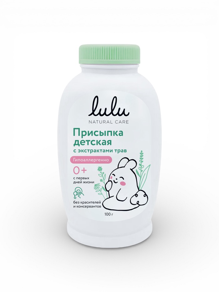 Присыпка детская LULU с экстрактами трав — идеальное средство для ежедневного ухода за чувствительной кожей ребёнка, обеспечивающее защиту, сухость и комфорт на каждый день.